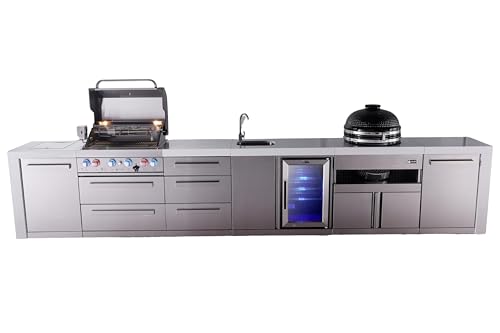 STAINLESS STEEL CONSTRUCTION - This modular outdoor kitchen is made of heavy duty 304 stainless steel, a high-quality material that is known for its durability & resistance to corrosion & rust that also adds sleek, modern, and stylish addition to your backyard or patio. High, consistent heat output are made possible by the stainless steel burners, allowing you to cook a variety of food and meals with ease. The stainless steel components also make the grill easy to clean and maintain.