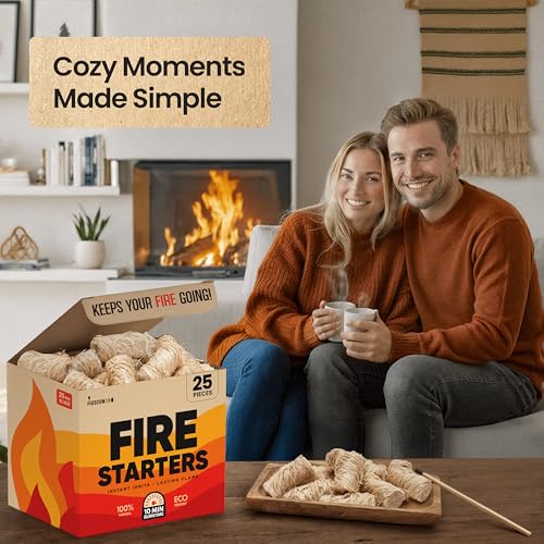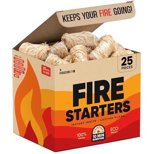 Moscow-Mix Fire Starter - Natural Fire Starters for Fireplace, Campfires, BBQ, Wood Stove, Smokers, Fire Pits - 25 pcs Weather Resistant Charcoal Starter for Grill - Food Grade Wax with 10 Min Burn