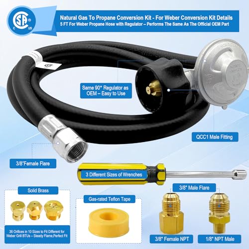 Natural Gas to Propane Conversion Kit,for Weber Natural Gas Conversion Kit,for Weber Genesis,Genesis II and Summit Grill–5FT Propane Regulator Hose for Weber Grills,36 Orifices,Fittings & Tools.