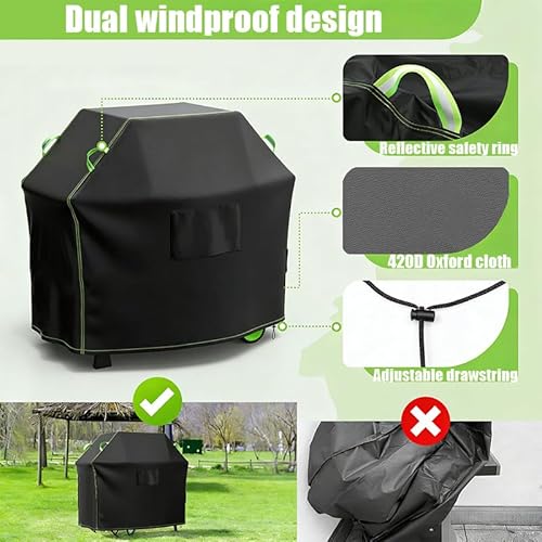 ???Dual Windproof Design?: Equipped with adjustable drawstring at the bottom and side securing straps, helping the cover stay in place even on windy days. The structure reduces movement and keeps your grill covered more consistently.
