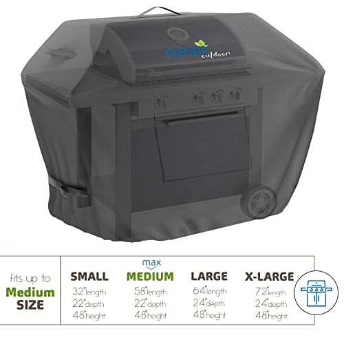Nestl BBQ Grill Cover, Heavy Duty Grill Covers - Waterproof Gas Grill Covers, Durable UV & Fade Resistant Barbecue Grill Cover with Front Zipper Pocket - 58 Inch, Black