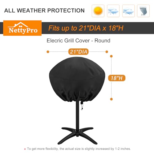 Dimensions: This electric grill cover guaranteed to fit round portable grill size up to 19"DIA x 18"H. Fits most brands grill like George Foreman, Char-Broil, Cuisinart, Homewell, Weber and more.