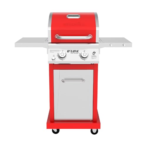 Nexgrill Deluxe 2-Burner Propane Barbecue Gas Grill with Warming Rack, 401 sq. in, 28000 BTUs, Outdoor Cooking, Patio, Barbecue Grill, Foldable Side Table, with Full stainless Steel Control Panel, Red
