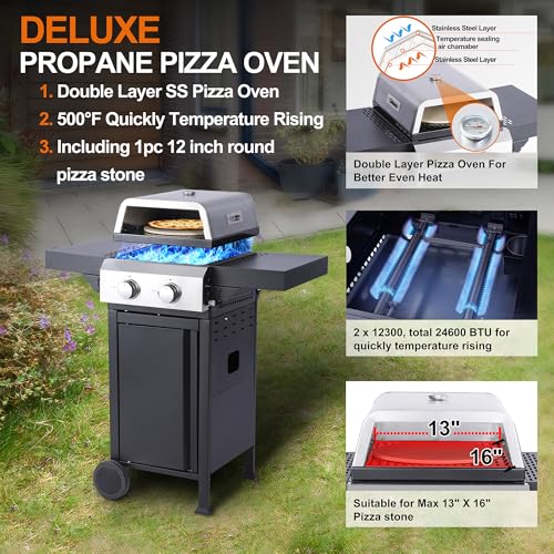Efficient Cooking Performance: Double burners deliver a total of 24,600 BTU for even heat distribution and precise temperature control. The push-and-turn automatic ignition system ensures easy and quick startups.