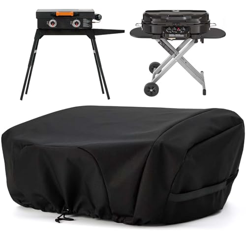 COMPATIBILITY--The grill cover fits for Blackstone 22 Tabletop Griddle with hood. It is also suitable for use with both propane cylinders or propane tanks. We have also lengthened the cover so that it covers the whole grill. Please Note: It is advisable to check the grill model you own before purchasing. FULL PROTECTION--To protect, protect it all! Introducing Noelife griddle cover for protecting not only the griddle but also the propane cylinder and gas connector. This grill cover for Blakcstone 22 inch tabletop griddle could help you keep your griddle, baking pan, propane cylinder, and gas connector stay clean and dry. Keep them free from direct exposure to the outdoors is safer and can also help extend the service life of your griddle. WINDPROOF--This cover for Blackstone 22” with hooks and loops fixed on the left and right and the adjustable drawstring design at the front and back, which can double prevent the grill cover from being blown away. Never worry about the windy days! WATER LEAKING PROOF--This griddle cover for Blackstone 22 IN has high-quality waterproof outer and inner material with sealed seam tape, which can double prevent water leaking. No need to worry no matter how much it rains, make your griddle always stay clean and dry! HIGH-QUALITY & LONG SERVICE LIFE--Our grill cover for Blackstone 22 inch griddle uses 600D high-density fabric, which is durable and not easy to tear. We also use premium stitching and waterproof workmanship to ensure a longer service life.