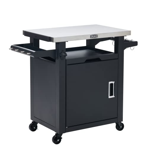 NUUK Deluxe Outdoor Grill Cart Rolling Table Cart Prep Station, 20" x 30" Stainless Steel Kitchen Storage Island with Enclosed Cabinet and Storage Drawer