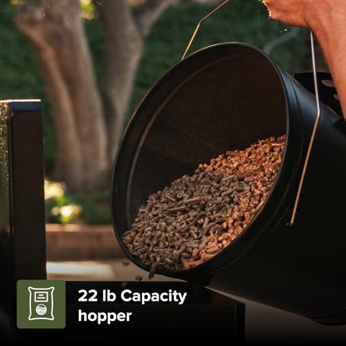 ?22 LB HOPPER FOR LESS UPKEEP? Spend more time grilling and less time refilling with a 22 LB pellet hopper that ensures long-lasting fuel efficiency. The easy-access clean-out door simplifies refueling for smooth and hassle-free operation