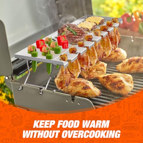 ?High-Quality Materials: Grill Warming Rack is made of high-quality sturdy stainless steel material, with strong rust resistance and corrosion resistance, easy to clean, long service life.