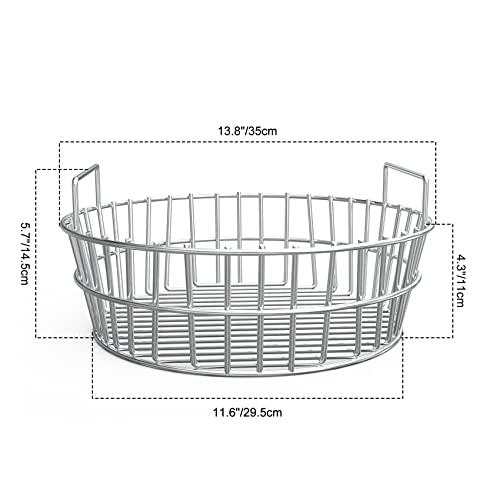 ?Dimensions?Top diameter:13.7”; Bottom diameter:11.7”; Height:4.25”. The charcoal ash basket fits for Char-Griller AKORN Kamado Charcoal Grill. Measure your grill size to make sure this ash basket fits before ordering.