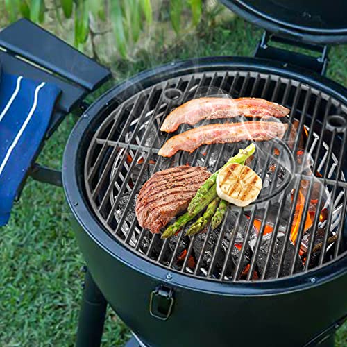 ?Faster Airflow & Time-saving Temperature Control? No more clogged air vents design in the bottom grill, the round shape design allows faster airflow to circulate around the sides, you can easily achieve high temperatures. It can also reduce the use of charcoal by burning it more efficiently.