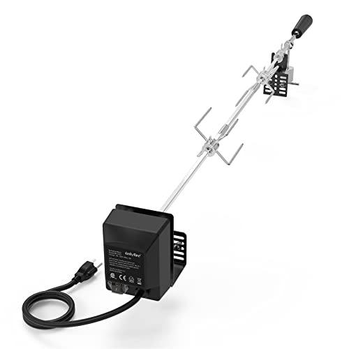 ?Strong and Powerful Motor?The rotisserie motor is electric, it is easy to use and convenient, unlike the cordless version, you don't need to change the battery oftenly. 4 watt motor keeps the rotisserie turning at a sustained, constant rate, ensuring every inch of the meat is evenly cooked and succulently moist. Holds up to 20 lbs of food, BUT NOT recommend to cook whole lambs or pigs.