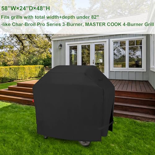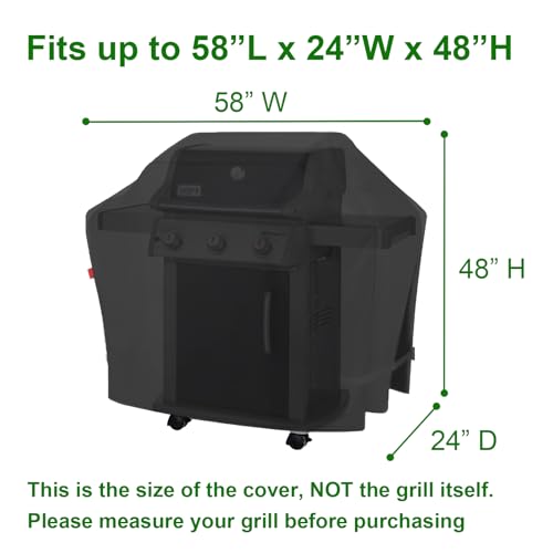 Perfect Fit: Measures 58"W x 24"D x 48"H, fits for Weber Spirit II E-310;Broil King: Regal S 420, Regal S 490,Signet 400,Crown 420, Crown 410,Crown S 440,Crown S 490,Megamaster: 720-0982 & 720-1095 5 Burner Grill;Char-Broil: Performance Series 4-Burner 463377319 Grill,Pro Series 463365124 & 463366724 3-Burner Grill;MASTER COOK:4-Burner BBQ Gas Grill;Royal Gourmet: GA4402S 4-Burner Grill,GA5401T 5-Burner Grill;Traeger:Woodridge Wood Pellet Grill,860” Cook Area