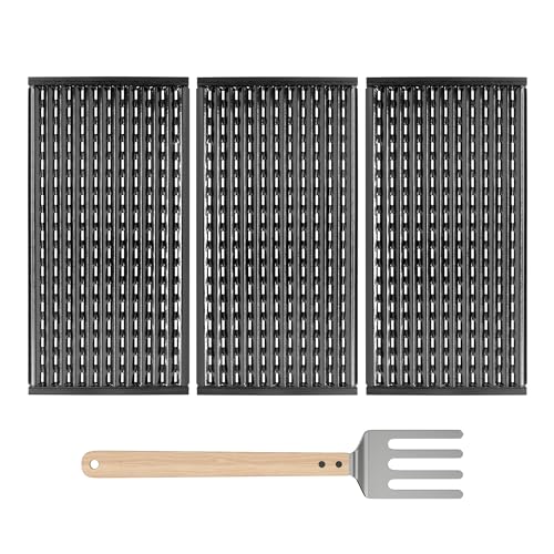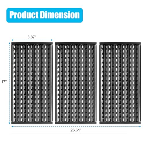 ?Complete Package?Each set includes 3 cooking grates + 1 grilling Spatula, Grate Dimension:17'' x 8 5/8'' for each,offering a cost-effective solution and making it a perfect replacement for worn-out grates. Give your grill a new lease of life with these superior repair parts.