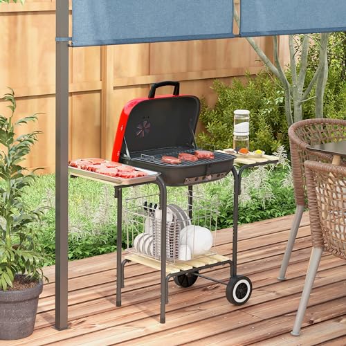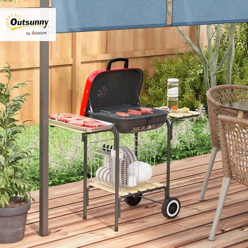 Portable Charcoal BBQ Grill: Outsunny's square charcoal grill has a spacious surface. A large, food-grade cooking grate gives our barbecue grill the space needed to supply food to a whole party. Built for the outdoors, it`s a cooking companion for camping, fishing, or patio picnics.