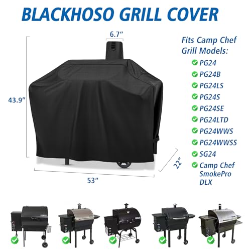 Compalibality: Camp Chep pellet smoker grill cover fits Camp Chef SmokePro DLX, PG24XT, PG24, PG24SG, PG24B, PG24LS, PG24S, PG24SE, PG24LTD, PG24WWS, PG24WWSS,Camp Chef Woodwind wifi 24, SmokePro, SG, and all other 24-inch pellet grills. Before ordering, please check the compatibility of this product with your grill’s model.
