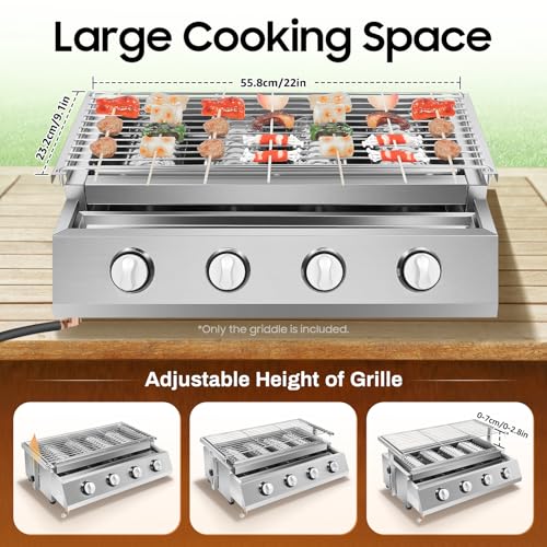 ?????LARGE COOKING SURFACE?: Offers a generous cooking area of 21.9*9.1 inches, enabling you to grill more food simultaneously, perfect for family gatherings and parties.
