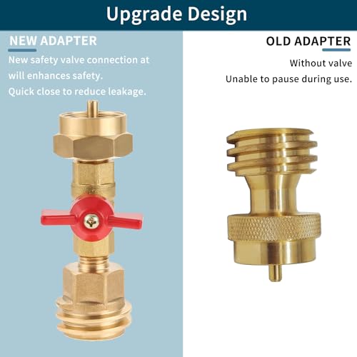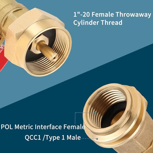 Propane Adapter 20lb to 1lb Converter with Valve, 20 lb to 1 lb Propane Tank Adapter with Valve Convert CGA600 to QCC1 Male Thread / POL Female Thread, Hook Up Small Propane Tanks When 20lb Ran Out