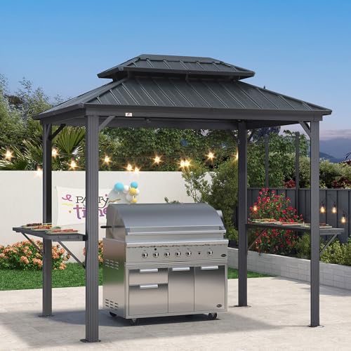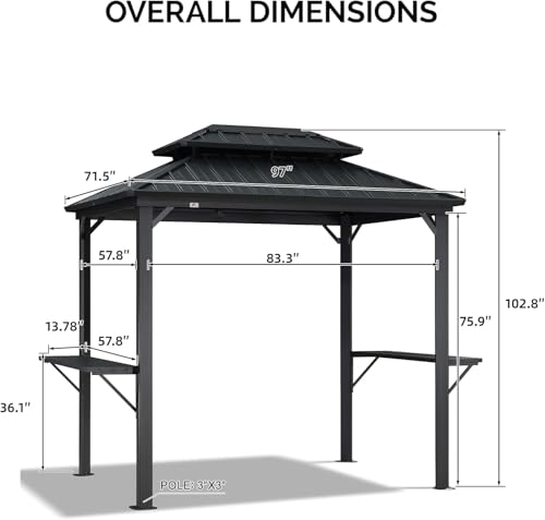 Ideal Grill Shelter: The grill gazebo measures 6' x 8', offers 48 square feet of shade, can accommodate most barbecues grill. Perfect addition to various outdoor living spaces such as patio, deck, backyard, garden, pool, lawns, ect.