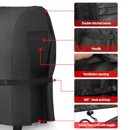 ?Waterproof & Snowproof & Anti-UV?Made of 420D upgraded fabric with inner waterproof PU coating, the barbecue cover exhibits superior colour fastness, UV resistant, rain repellent, tear resistant and cold crack resistant, durable and long-lasting, gives your grill all year round protection against sun, rain, snow, hail, wind, dust, dirt and etc.