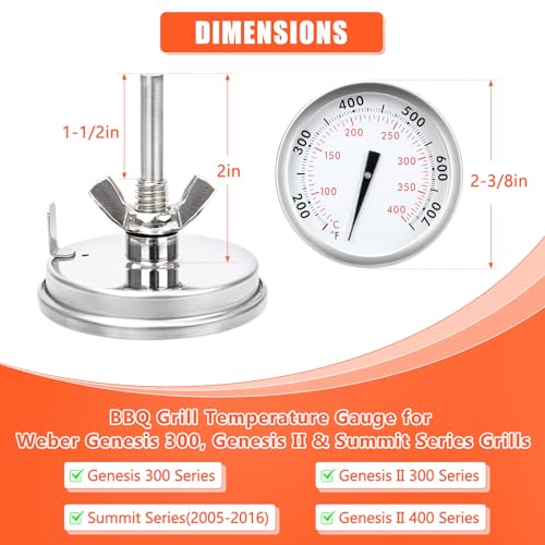 ?????Compatibility?67088 thermometer replacement for Weber Genesis 300 series grills (2007-2016), Genesis II 300, Genesis II 400 series (2017 and newer), Summit (2005-2016) models. Replacement for Weber Thermometer 67088 (Replaces Weber Part 67731)
