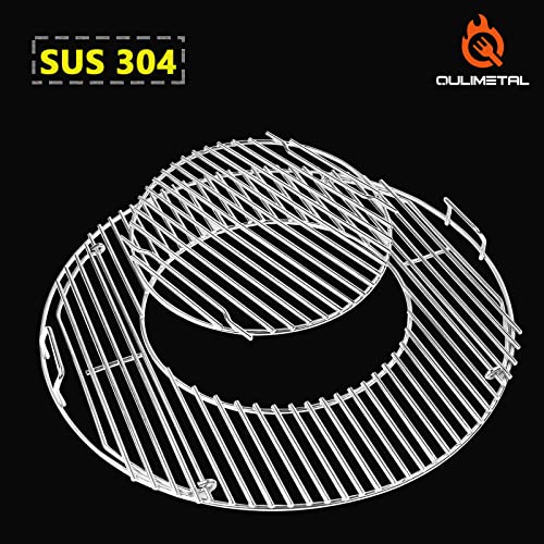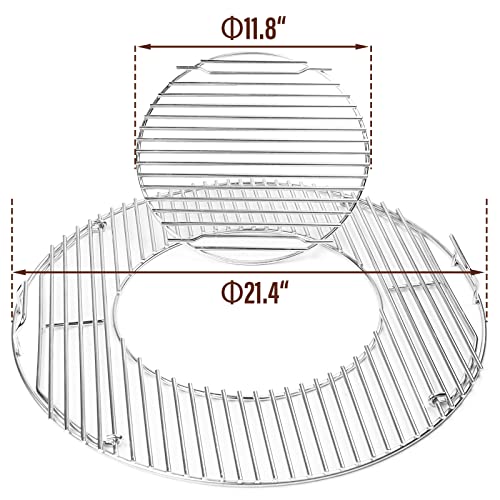 QuliMetal SUS304 Grill Grate for Weber 8835, 22.5 Inch Weber Charcoal Kettle, One-Touch Silver, Bar-B-Kettle, Master-Touch, Performer and Premium Charcoal Grills, 21.5" Gourmet BBQ System Grill Grates