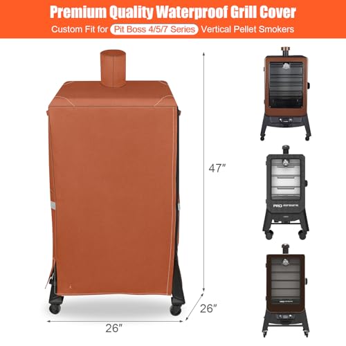 ?Dimensions?26"(L) x 26"(W) x 47"(L). ?Perfect Fit?Fits Pit Boss PB 73550, 4-Series, Pro 4-Series, 5-Series, 7-Series vertical pellet smokers: PBV4PS1, PBV4PS2, PBV5PW1, PCBVER5, PBV5P1, PB5000SP, PB7000SP, PBV7P1, Pitboss Pro Series 4/5/7 Vertical Smokers. ?Also Perfect Fit?Vertical smoker cover pit boss 73040 fits Pit Boss Competition Series PBV5P2 Vertical Smoker and Pit Boss 5-Series Vertical Pellet Smoker - Copper - Walmart PBV5PW1 - Copperhead 5 Series Cover