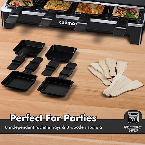 Raclette Table Grill, CUSIMAX Electric Grill, Indoor Grill Korean BBQ Grill With 2 in 1 Reversible Non-stick Plate, Crepe Maker with Adjustable temperature control, 8 Raclette Pans & Wooden Spatulas
