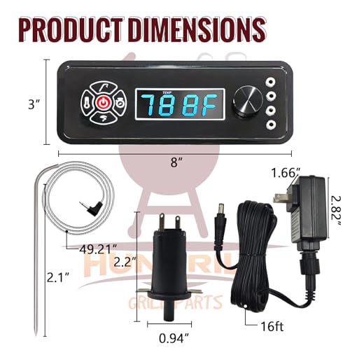 COMPLETE KIT FOR GRILL MAINTENANCE: Includes: 1× Control Panel (Non-WiFi/Bluetooth), 4× Meat Probes (Accurate temp monitoring), 3× Hopper Lid/Door Switches (Part #9904190041), 1× 12V 1.5A Power Adapter (16ft cord, IP44 splashproof), 4× Probe Clips + 2× Probe Gaskets (Secure fit & heat resistance),1 × Instruction Sheet.