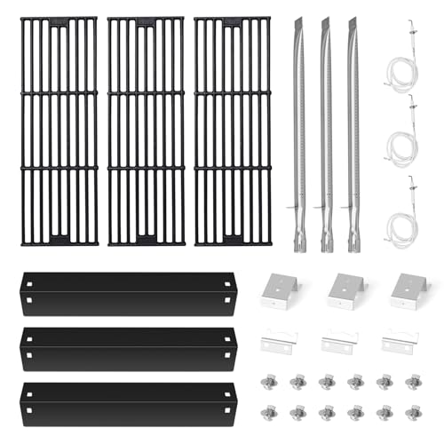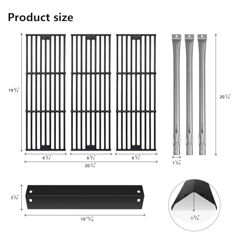 HEAT PLATE&BURNER: Made of porcelain steel heat plate and stainless steel burner tube replacement set, corrosion resistance and heat resistance, easy to install. Distributes the flame evenly, allowing the fire to cook the meat at an even rate, making your grill perform like new