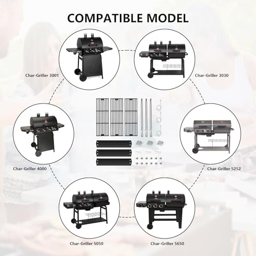 COMPATIBLE: Fits for Chargriller: 2121, 2123, 2222, 2828, 3001, 3008, 3030, 3072, 3232, 3725, 4000, 4001, 4008, 4208, 5050, 5072, 5252, 5650, 9020 gas grill, Replacement parts for King Griller: 3008, 5252