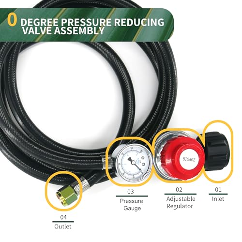 0-20 PSI Adjustable?:The high-pressure regulator and hose offer a 0-20 PSI range adjustment with an easy-to-use red knob, making it suitable for most propane appliances while ensuring optimal performance. ?For safety, tighten adjustments gently using the designated knobs only.