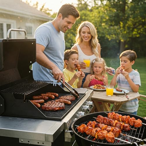 KABOB CREATIONS – Unleash culinary creativity with 4 versatile skewers! Inspire him: juicy steak bites, garlic shrimp, colorful veggie skewers, or grilled desserts for parties & dinners.