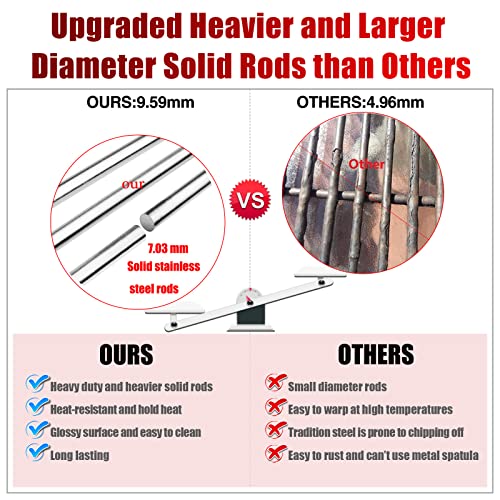 ??UPGRADED MORE HEAVIER, LARGER DIAMETER SOLID RODS? You will get the rcs grill grates that are made of solid stainless steel. Rcs gas grill parts will last for many years if it's taken care of. ??HIGH HEAT RETENTION AND COOK FOOD FAST, DELIVERS EVEN HEAT DISTRIBUTION? Heavy duty and more durable than others. retaining and transferring heat. ? Others seller actually a stainless steel wrapped (This is where a thin sheet of stainless steel is wrapped around traditional steel)