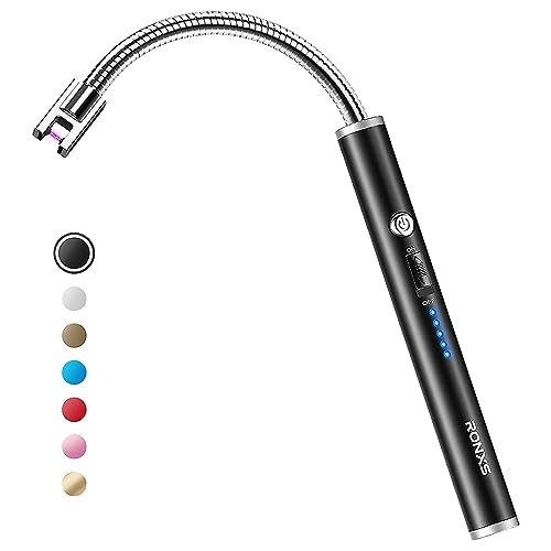 RONXS Lighter, Upgraded Candle Lighter Camping Lighter Grill Lighter USB Lighter Plasma Arc with LED Battery Display Safety Switch, Longer Flexible Neck for Candle Cooking BBQs Fireworks (Black)