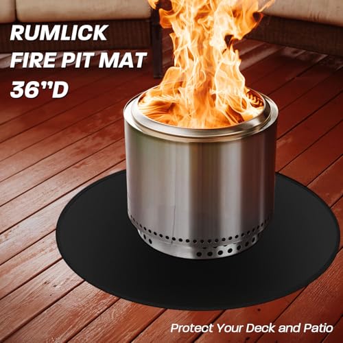 ?36" Round Fire Pit Mat?Rumlick fire pit mat, designed for Solo Stove Bonfire/Ranger 2.0, is crafted from double-sided fireproof fiberglass. It shields your deck and patio from sparker embers and hot grease. Versatile in use, it serves as an under grill mat, fireplace mat, and camping stove mat. Ideal for your patio.