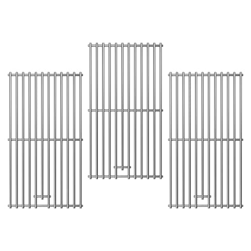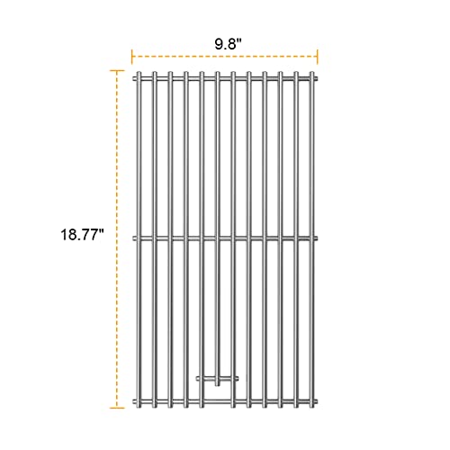 Package Includes: 3-Pack Stainless Steel Cooking Grid Grates. Dimension: 8 3/4" x 9 13/16" each, 18 3/4" x 29 7/16" total, 7 mm in diameter.Made from food grade 304 stainless steel solid rod, much better than the original cast iron grates, super easy to install and clean.