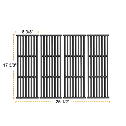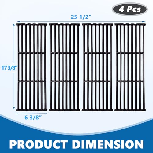 Dimensions and Package: Include 4pcs Matt Cast Iron Cooking Grates Broil King Baron grill parts replacement, 17 3/8" x 6 3/8"each, 17 3/8" x 25 1/2" total.