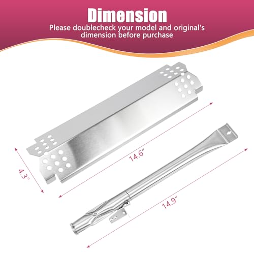 ?Dimension?Heat plate L 14.6" x W 4.3" x H 1.4", material: stainless steel; Burner tube: L 14-7/8", Material: stainless steel. ?Package?4 x Heat Tent, 4 x Burner, 4 x Grill Igniters,and screws hardware for installation.