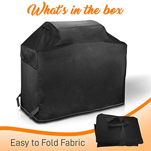 HEAVY-DUTY CONSTRUCTION MATERIAL: Our grill covers are made with heavy-duty 600D polyester with PVC backing that is waterproof, UV-resistant and tear-resistant, meaning it will take whatever you throw at it, day in, day out