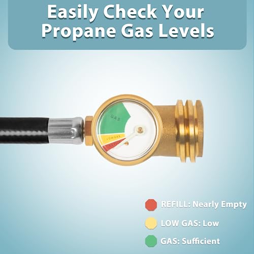 SHINESTAR 5FT Propane Extension Hose with Gauge, Propane Tank Extension Hose for RV, Gas Grill, Stove, Heater, Fire Pit and More