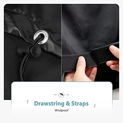 [Better Secure] Fastening straps and bottom drawstring are added to secure the cover in place even in strong winds