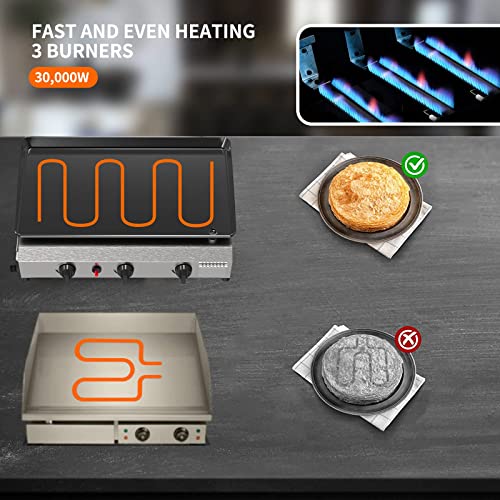 SKOK 3 Burner Gas Griddle- 23.3 Inch Outdoor Propane Griddle-30000 BTU Propane Fuelled, Portable Flat Top Gas Grill Camping Griddle Station for Kitchen, BBQ, Camping Tailgating