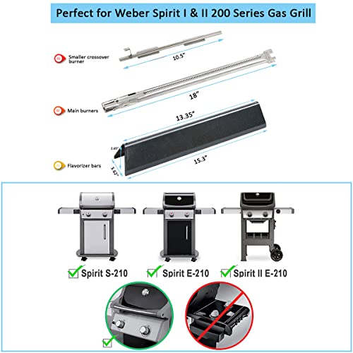 ?Package Include?: 3pcs Flavor Bar + 2 main burners + 1 smaller crossover burner for Weber Spirit I II 200 E-210, S-210, E-220, S-220 Grill Replacement Parts;