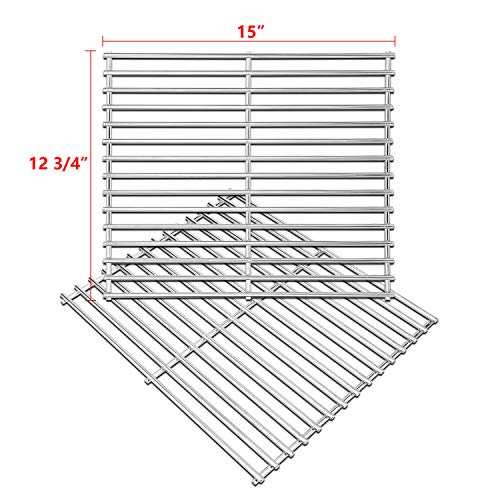 ?Grid Grates Dimensions: 15" x 12 3/4" Each, 15" x 25 1/2" Total; Package: 2 pack x Stainless steel cooking grates and 1-pack grill cleaner. Kindly check again for the SIZE and MODEL of your original parts before purchasing