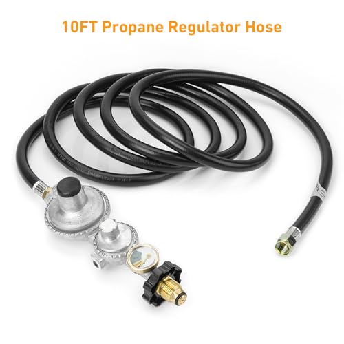 The 10FT propane regulator hose is made of high quality rubber, which is durable and has a long service life, with stands weather, scratching, denting and corroding.