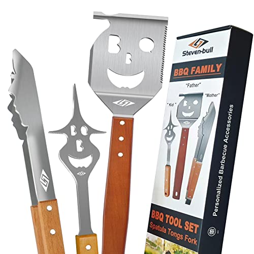 STEVEN-BULL Heavy Duty BBQ Grilling Tool Sets, Extra Thick Stainless Steel Spatula Fork and Tongs, Extra Long Grill Accessories, 18 Inch, Best for Barbecue & Grilling, Gift Box Package, 3 Pack