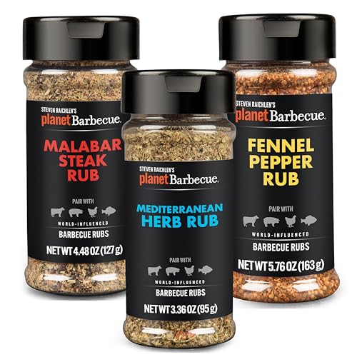 Flavors include: Malabar Steak, Mediterranean Herb and Fennel Pepper. This sampler set is perfect for experimenting with new flavors in the kitchen or on the grill!