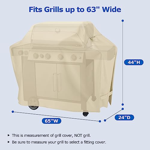 BBQ Grill Cover Dimension - 65"W x 24"D x 44"H, compatible for most 4-burner, 5-burner and 6-burner gas grills in width from 58" to 63" such as Weber, Char broil, Kenmore, Nexgrill, Napoleon Ducane grills and more. Please measure your grill before purchasing.