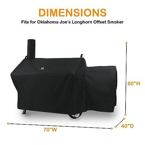 Perfect Fit - The smoker grill cover measured 70"L x 60"H x 40"W. Perfect fits for Oklahoma Joe's Longhorn Offset Smoker. For Oklahoma Joe's 13201747-50 grill models.