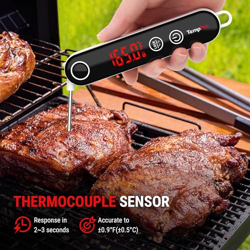 ?Ultra Fast & Accurate?Digital meat thermometer for grilling features advanced thermocouple technology that provides 2-3s response time; 4.0'' food grade probe thermometer guarantees an accurate temp reading to ±0.9°F (±0.5°C) with a wide temp range of 14°F - 572°F (-10°C - 300°C)